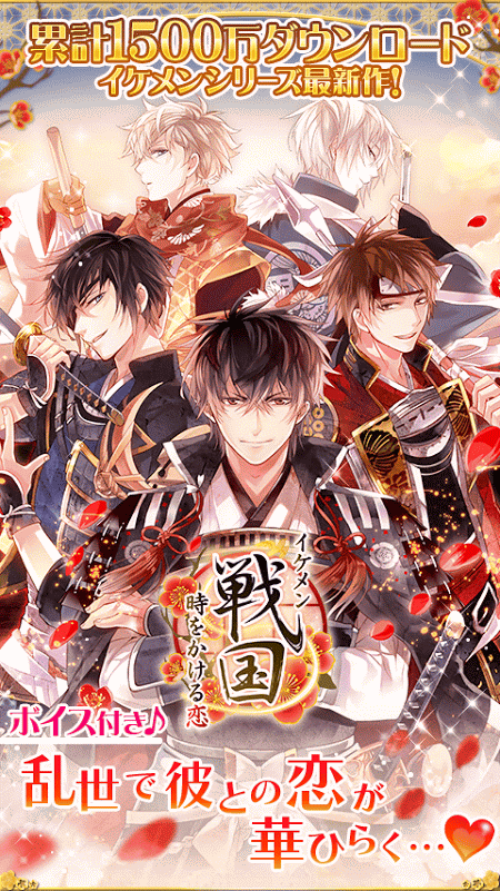 美男战国穿越时空的爱恋是穿越到“战国时代”,与织田信长,伊达政宗,真田幸村等11人的战国武将的恋爱 模拟游戏 。“帅哥”系列的豪华声优阵容,登录时和游戏等所有机能实装,游戏的世界观浓厚。