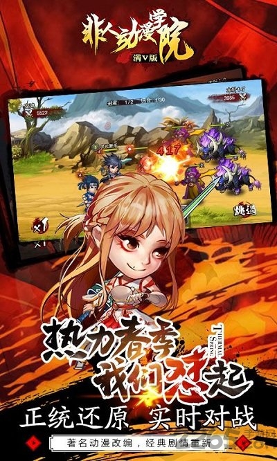 非人动漫学院满v版是玩法多样的动漫卡牌产品.全新还原穿越剧情,畅享异界!与索隆同场杀敌,同宇智波一族大战三百合!超专业漫画迷倾力加盟,热血战斗, 收集 强力英雄,戴上霸气装备,手中的剑,就此挥下,深若海渊,至死方休!