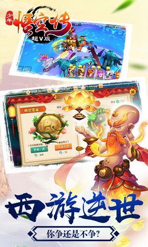少年悟空传是一款非常优质的回合制卡牌手游,以西游为题材,精美的人物立绘将小说里的人物形象淋漓尽致地展现出来,丰富的游戏剧情承接小说,更在尊重原著的基础上做了适当改变,争取两开花!华丽的技能特效,恢弘的战斗场面,给玩家们带来最极致的游戏体验,游戏操作简单,上手容易,不肝不氪,让玩家们轻松游戏,感兴趣的小伙伴们千万不要错过了哦。