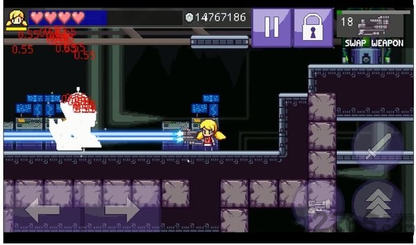 由于在游戏当中美云将可以使用两种武器,所以在游戏中有两个攻击键,一个是枪械进攻,另一个是挥剑攻击敌人。