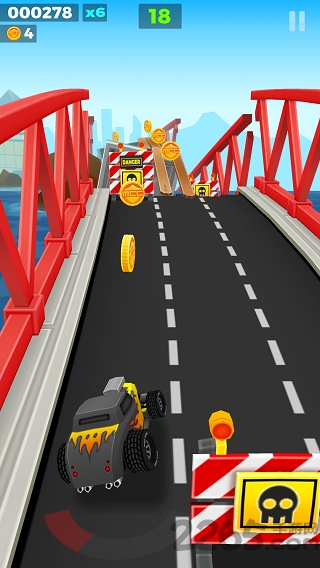 注意路上的各种障碍, 收集 硬币升级你的能力和解锁超过50种不同的车辆。