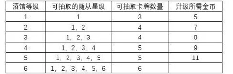3. 酒馆等级提升到固定等级,每次刷新能抽取的卡片数量也不同,如下表:
