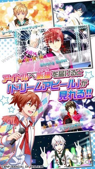 这是一款音乐养成游戏,游戏世界里,玩家通过使用官方发售的“Dream Festival卡片”培养和支持自己喜欢的偶像