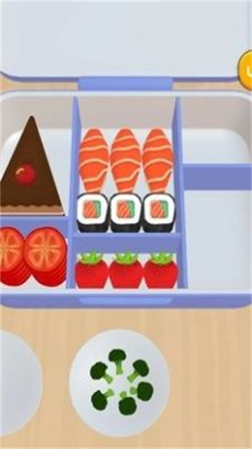午餐便当是一款模拟经营类型的游戏,整个游戏的画面设计都是特别简洁的,操作起来非常的简单,你可以在这里看到各种不同的食材,不仅有蔬菜,还有水果,而且必须要根据各种不同的步骤,不断的进行搭配和摆盘,才能够让你获得游戏的胜利。