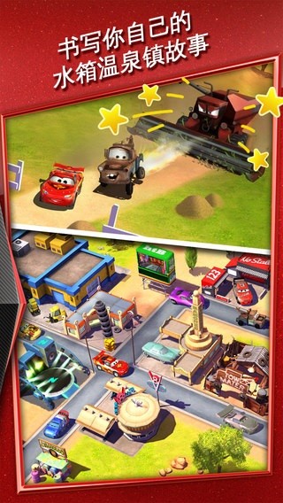 1、精美的3d画面,重现了《赛车总动员》电影中的角色.建筑和地标,加入了可爱有趣的动画效果!