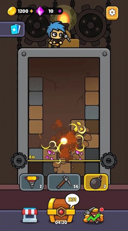 2、玩家只需通过滑动手指合并矿石,利用道具轻松获得更高分数;