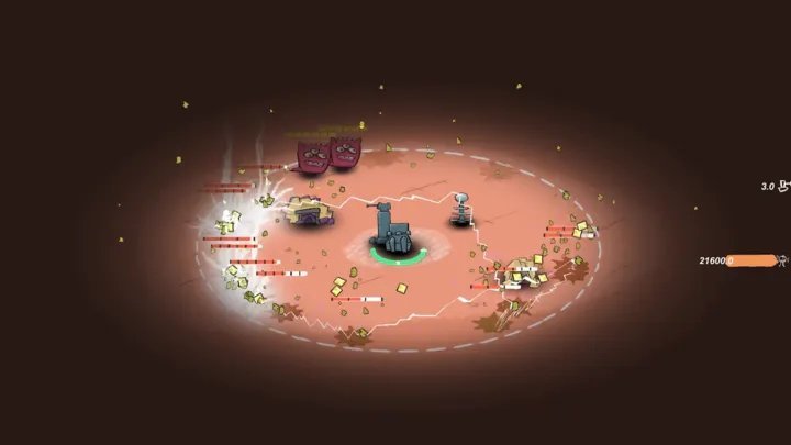 3、因此,玩家需要用金币来升级武器的伤害、速度、射程等,以抵御许多外星怪物,避免被挖矿摧毁
