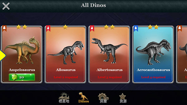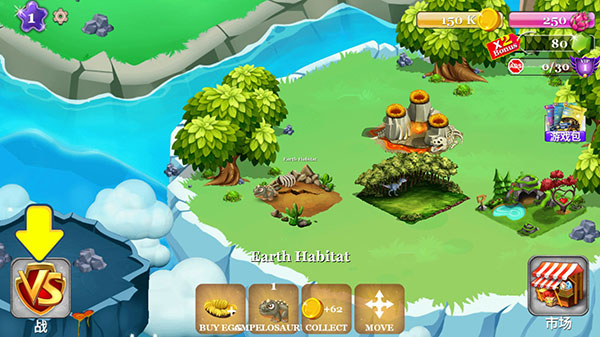 1、首先在本站下载迪诺之战游戏,游戏开局先前往市场购买恐龙