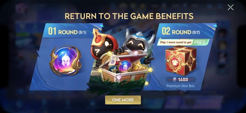我们注意到回流的玩家在逐渐增多,为了感谢玩家的支持,我们在玩家回流后增加了前两局对局的奖励,分别可以获得1个英雄宝珠和5选1皮肤宝箱;