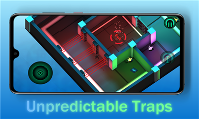 1、炫酷画面,游戏通过多种颜色的光影,打造出了一个略带科幻风格的迷宫,让整体游戏的潜行氛围变得更加有趣。