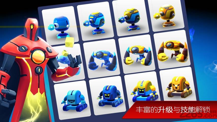 3、通过解锁带有独特技能的机器人及不断的能力强化,让你的机器战队上的了厅堂、下得了厨房、斗得过小三、打得过流氓。