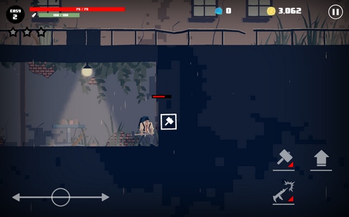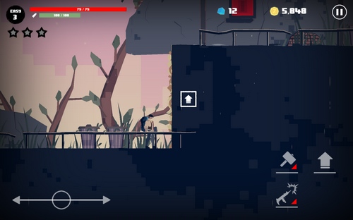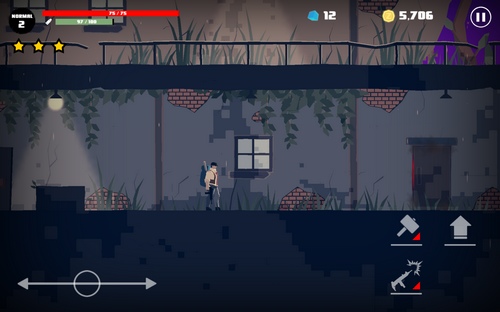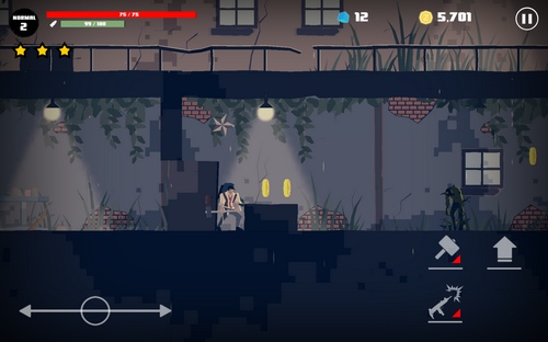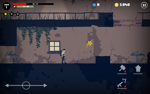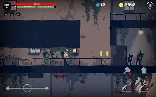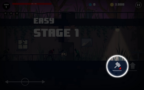 躲在平台后面攻击是一个不错的攻击方式,玩家跳过平台比较快,丧尸比较慢,所以玩家可以在另一边攻击丧尸,而且锤子的攻击范围也正好是在丧尸上来的时候攻击得到。