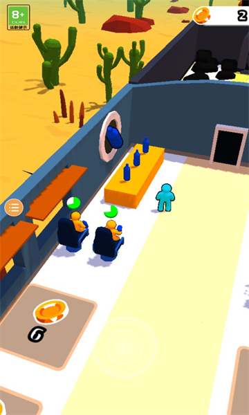 最初,玩家只能在火车上充当列车员。每一站都会出现一群乘客。