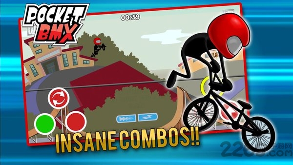 《口袋小轮车 Pocket BMX》是一款体育游戏,游戏采用二维风格,你操作一个可爱的、戴着头盔的火柴人车手骑着自行车,拯救你的小镇。通过7个不同的地点提供,学习超过18现实世界的技巧,你也有能力将这些技巧,创造一个无休止的组合。
