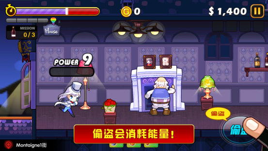 ⑶进入房间后按右侧按钮进行偷盗,偷盗会消耗能量。
