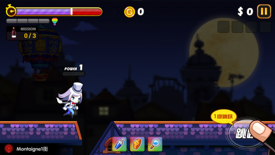 ⑴按右侧按钮跃过障碍。(如下图所示)