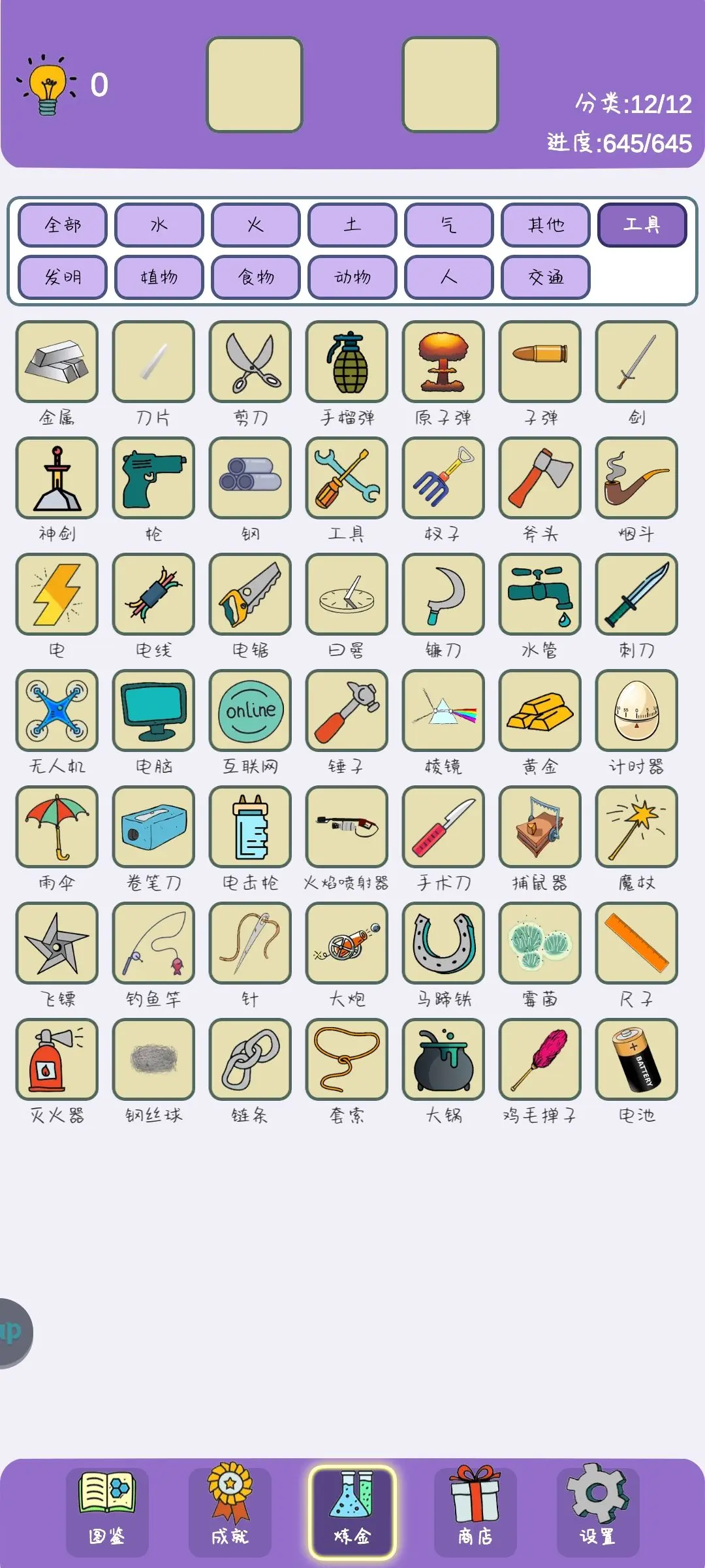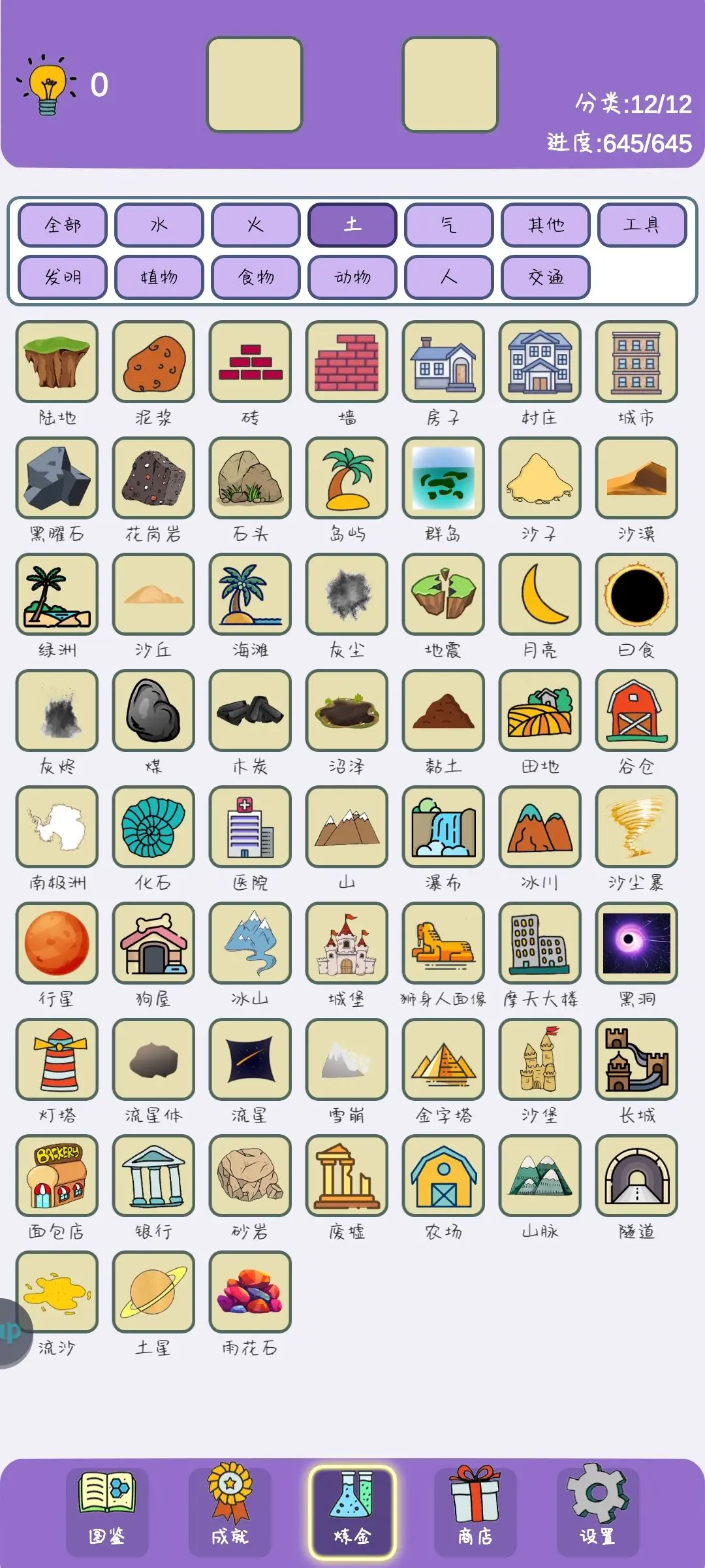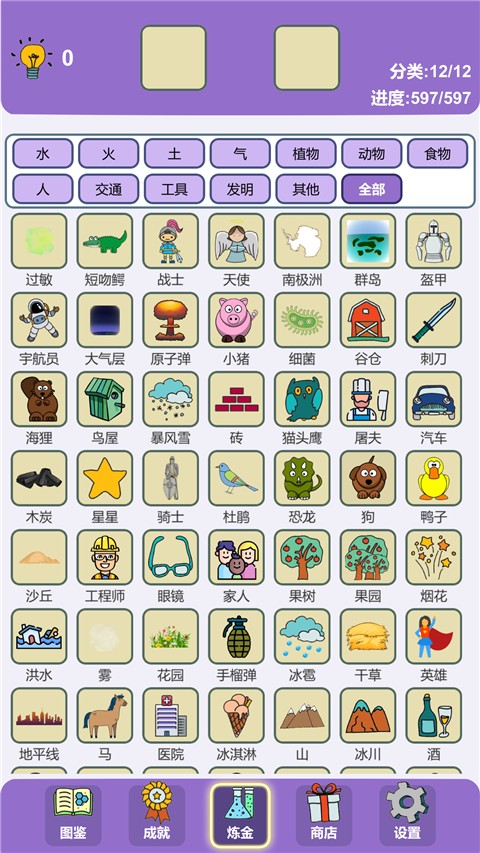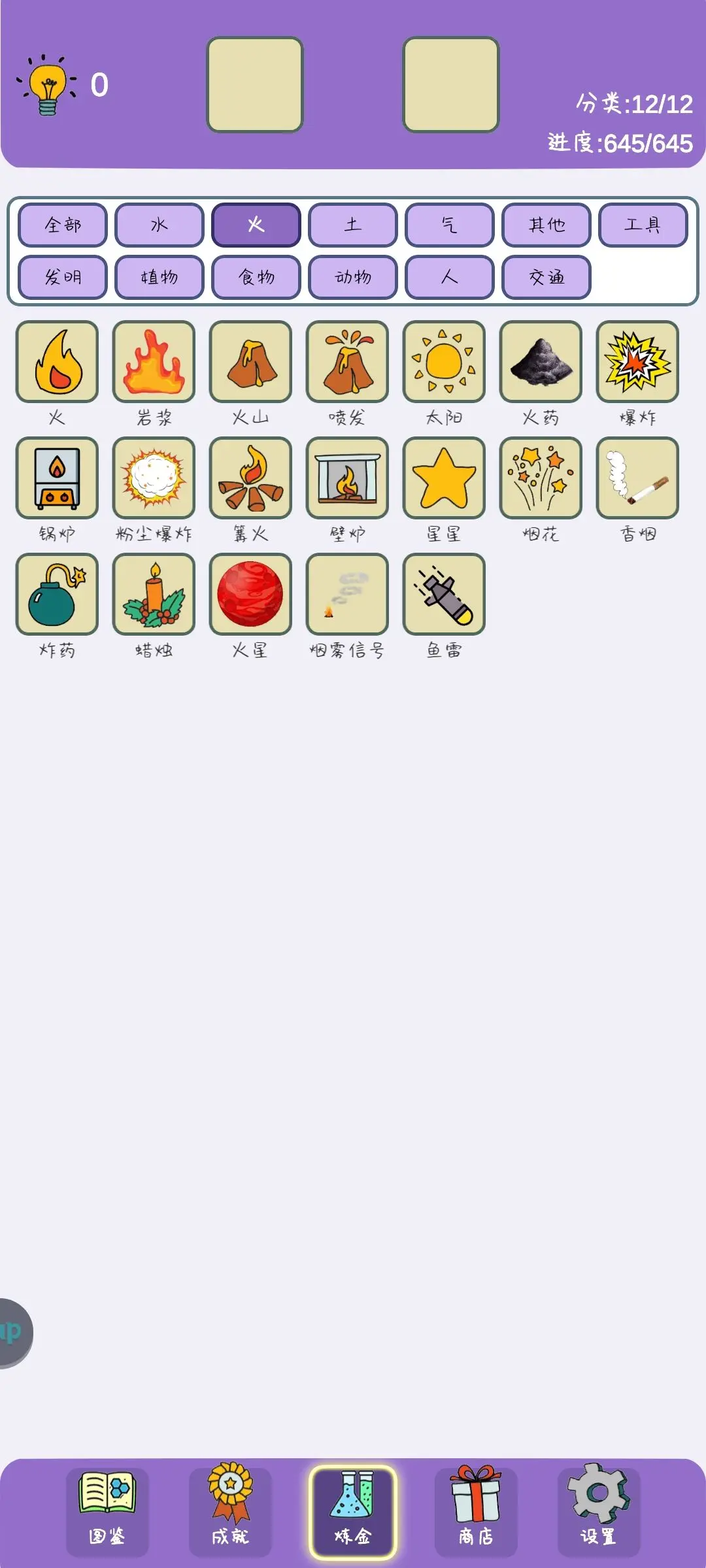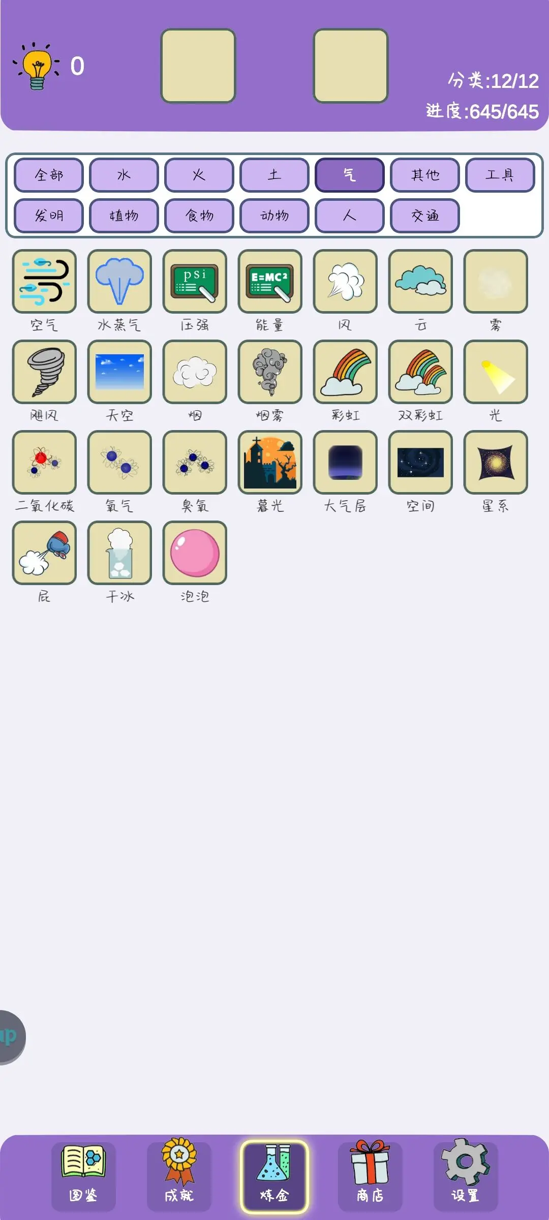 3、逐步解锁更高级别的元素,拓展更多的炼金组合方式。