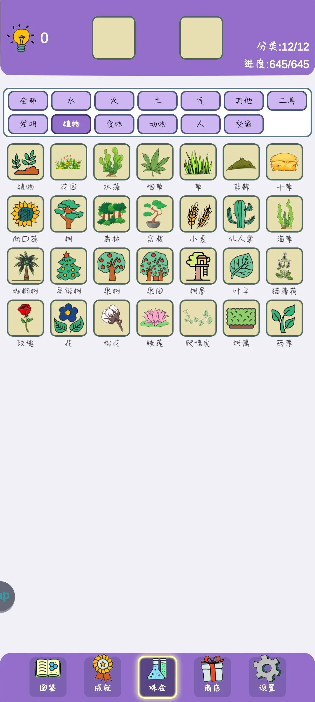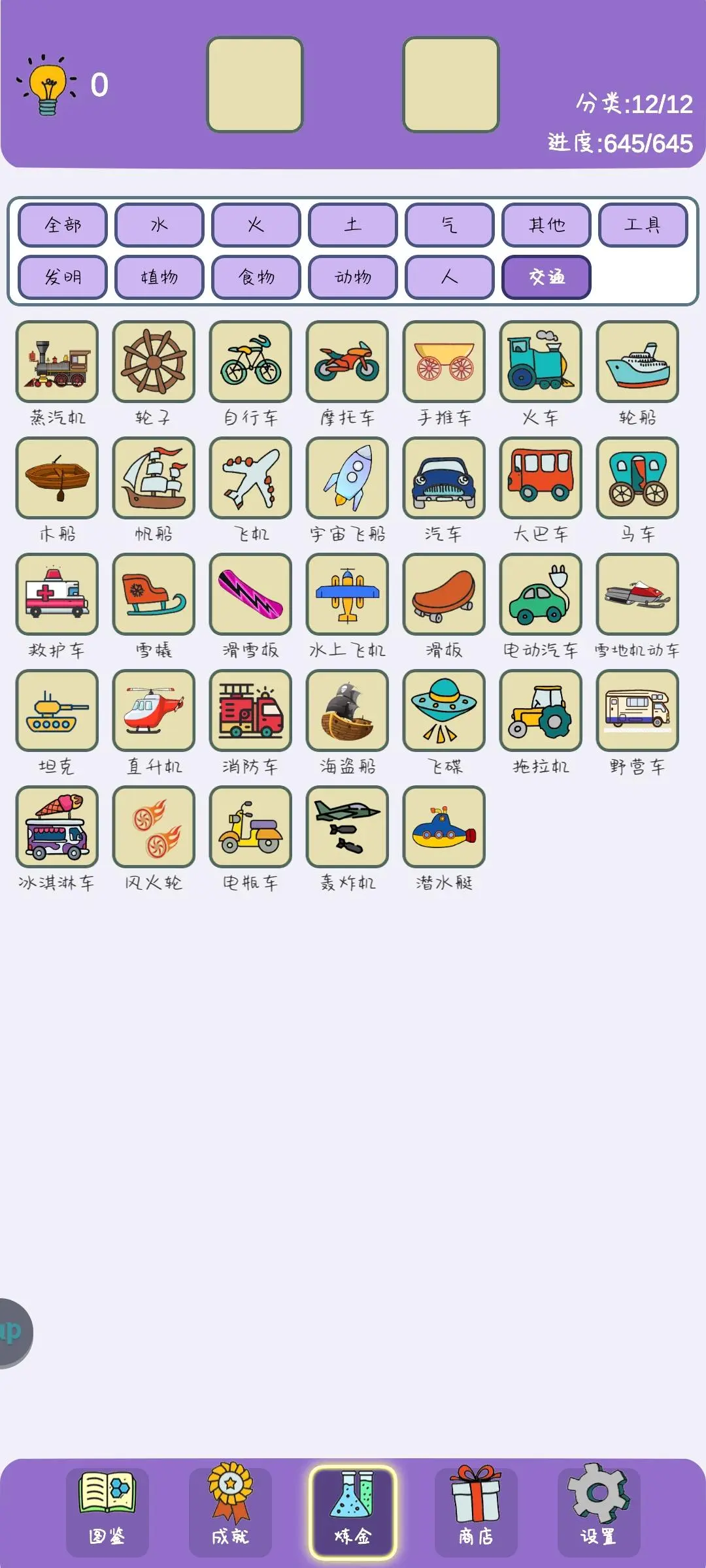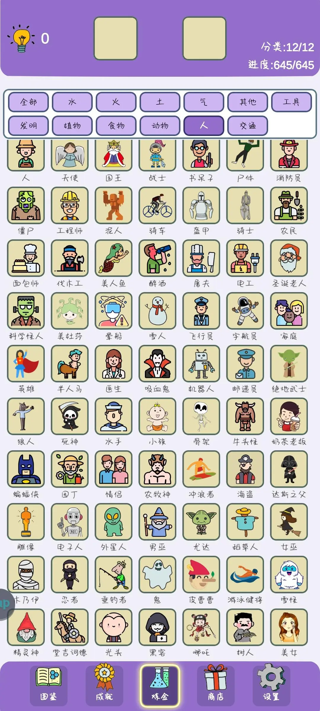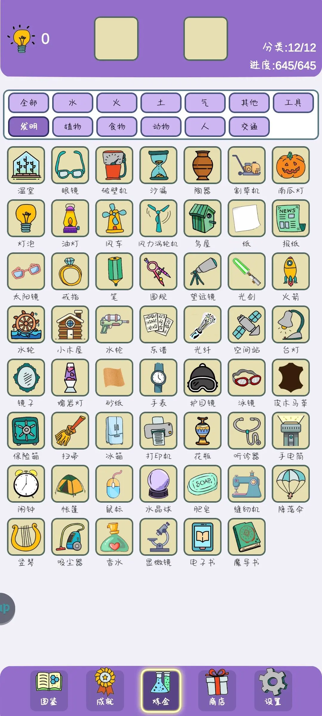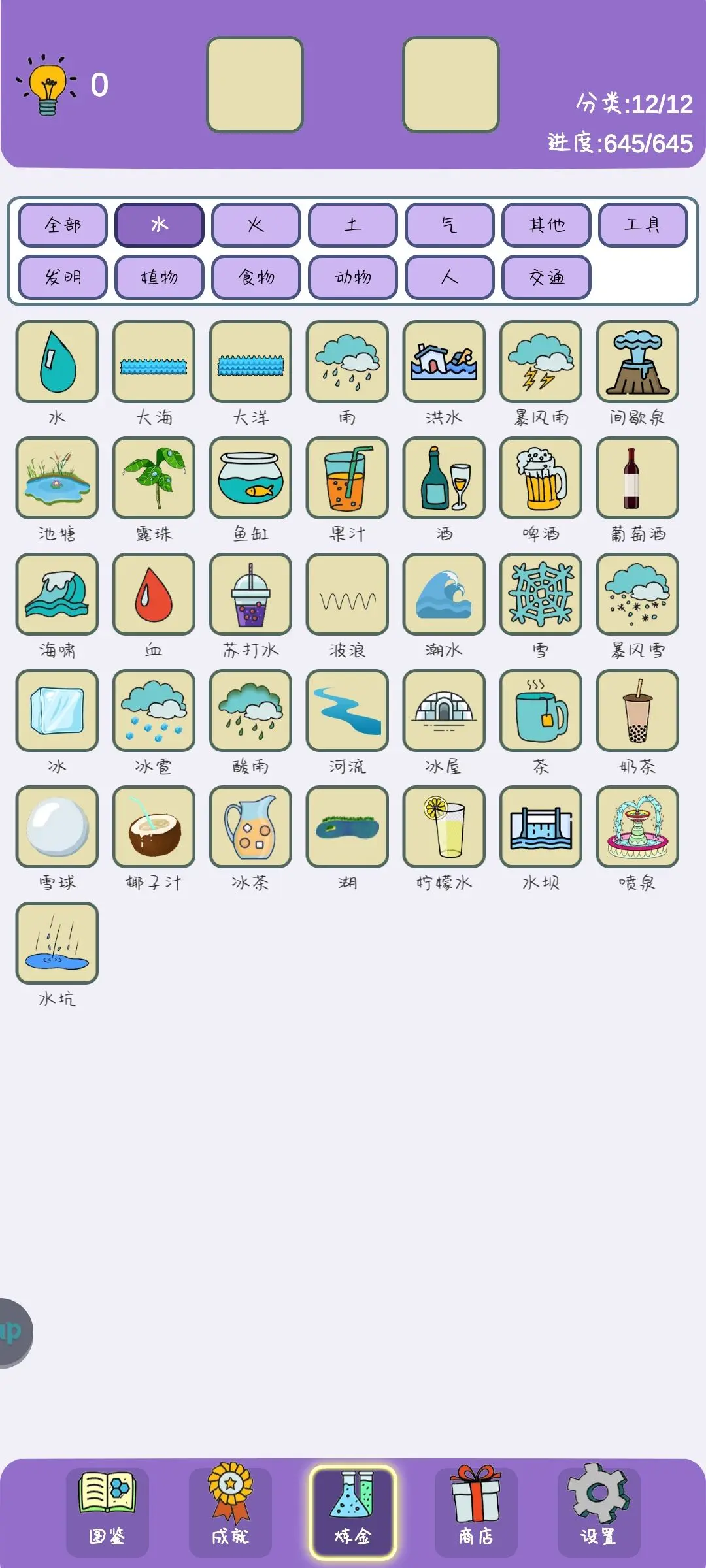 3、逐步解锁更高级别的元素,拓展更多的炼金组合方式。