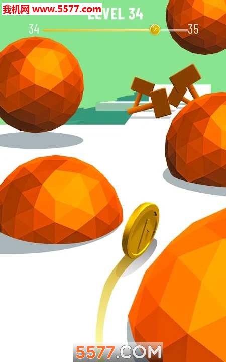 这是一款简约风格的休闲闯关类手游,游戏中玩家需要扮演一枚滚动的硬币,在充满了机关陷阱的场景里冒险,躲避各种陷阱通过关卡进入洞中,获取更多的积分,需要灵活的控制金币左右闪躲避开障碍危险,穿越重重阻碍到达终点,丰富的等级关卡设定,难度也会相应提升,玩家也会遇到越来越多的危险。