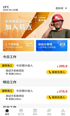 易点天工手机版是一款专门为建筑行业打造的求职招聘平台!在这里用户不仅可以更加轻松的进行在线求职,还可以进行账本记账管理,帮助自己更好的进行工资记录,这里所有的岗位信息真实可靠,用户可以放心使用!