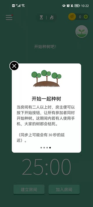 4、点击加入房间,可以直接在列表选择或者搜索好友建立的房间号,需要注意的是一起种植一个人不专注会影响所有的树。
