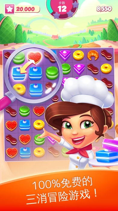 - 各种强大的神器,能够冻结时间,重新排列甜点等,助你轻松挑战各大关卡!