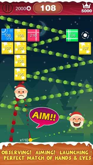 圣诞 打砖块 是一款非常有趣的 休闲游戏 ,游戏上手容易玩家只需要扔出弹球去击碎转款即可得分,砖块上的数字就是你可以得到的分数快来看看你能得到多少分吧,对这款游戏感兴趣的小伙伴快来IT猫扑下载吧。