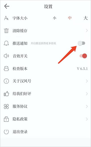 5、即可在手机汉风号app中实现关闭推送通知功能操作。