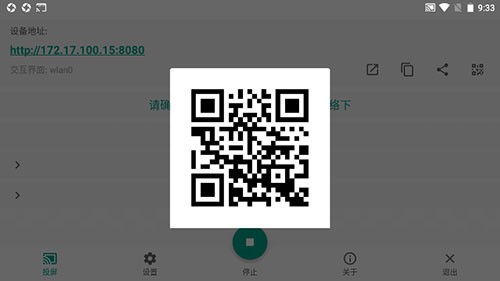 2、另外一台没安装的手机,用自带浏览器输入获取到的设备地址,或者点击“设备地址”下面的二维码,直接连接。