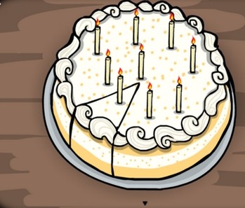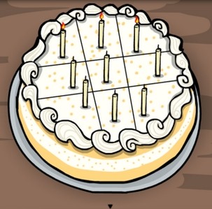 4、下图为蛋糕切法,蛋糕给父亲,他吃出一根针,拿走。