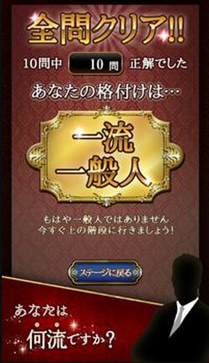只要藉由1次考试共10题的问题,马上就能知道你的等级!