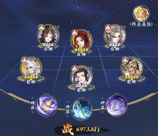 玄龟,夸父,嘲风三个肉盾在前排顶伤害,极大提升队伍的生存能力。