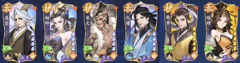 用水系卡牌回怒和治疗,用风系卡牌打爆发输出,主打女魃和武罗的双爆发核心。