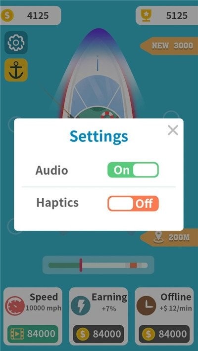 2、非常简单轻松的操作方法,在游戏中去收集更多的金币去解锁不同的道具或者游艇。