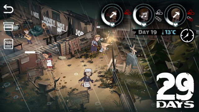 29天手游是一款独特的 冒险生存游戏 ,由 香港 PlayLazy开发团队制作,游戏中采用了回合制的基本玩法,在每个小时开始之前玩家都可以决定在接下来的一个小时时间的行动,例如说外出寻找资源,或者修理家里的家具等等,此外在游戏中还加入了技能系统,玩家通过学习技能可以提升自己的一些能力。