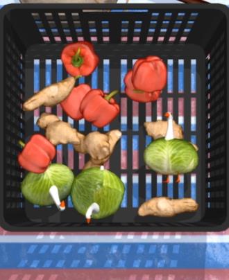 第一关比较简单,一次点击包菜、太空椒以及生姜就能顺利通关了。
