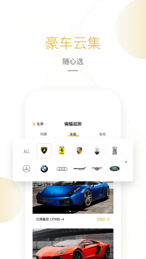 3.不同品牌的豪华汽车在这款平台上都能快速的搜索到,也可以通过搜索品牌来找到相关的豪华汽车。