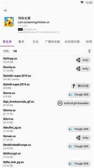 2、点击一个游戏应用,可以查看该游戏包含的原生库