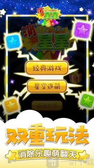 同城游消除星星是一款 休闲 娱乐的消除小游戏,在游戏中玩家需要将相同的方块进行消除即可, 经典 的消除游戏玩法,精美的画质,卡通的风格,让玩家不仅可以玩游戏,还可以释放压力, 关卡 多种多样,难度不一,喜欢的朋友不要犹豫,快下载 闯关 吧!