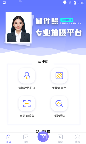 专业的证件照制作平台,足不出户就能制作免费的证件照,拍照、裁剪、换底色、换衣等功能齐全。