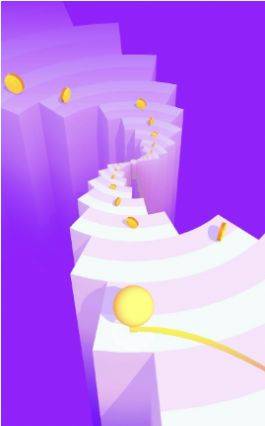2.道路上面会出现很多金币,玩家还要控制着小球收集这些金币,使用金币可以去商店购买更多的能量道具。