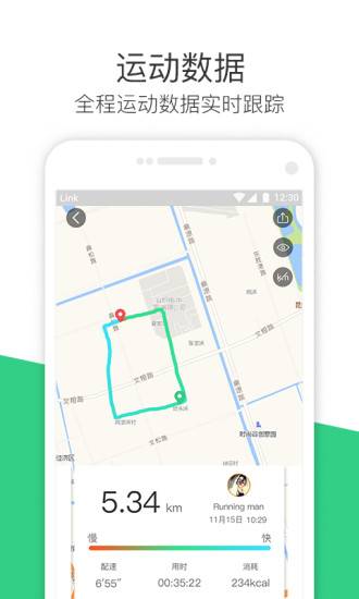 通过同步智能运动手环W1的运动数据,监测每日的运动步数和跑步数据;特有的大数据统计图能让你更直观了解每天的运动状况;同时拥有高精度GPS定位,记录每一次前进的轨迹。