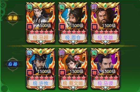 在新手阵容的基础上进行了升级,将前排全部换为强力输出战士,后排黄月英华佗双重奶妈回复血量,对挑战强力BOSS有奇效。