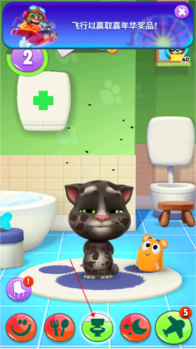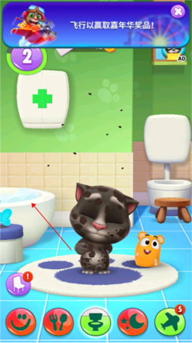 1、首先,进入《我的汤姆猫2》游戏,先点击“马桶”按钮。