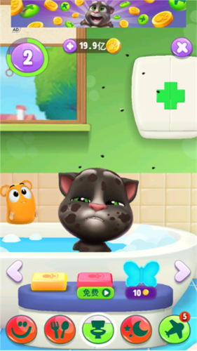 4、依然是一只会说话的汤姆猫,依然是喂食、盥洗、睡眠、小游戏等功能,但细节处确实做得更好了。