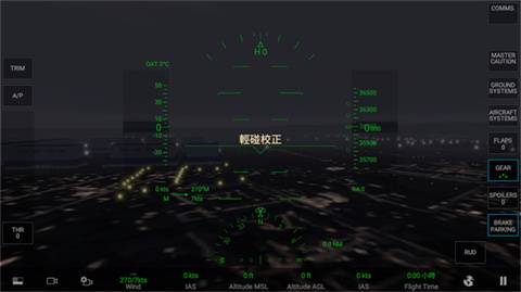 1、进入rfs模拟飞行游戏中,点击“开始起飞”后,进入正式的飞行界面。首先会提示需要轻触校正,校正的目的是为了确认手机在什么角度是飞机平飞的角度状态。