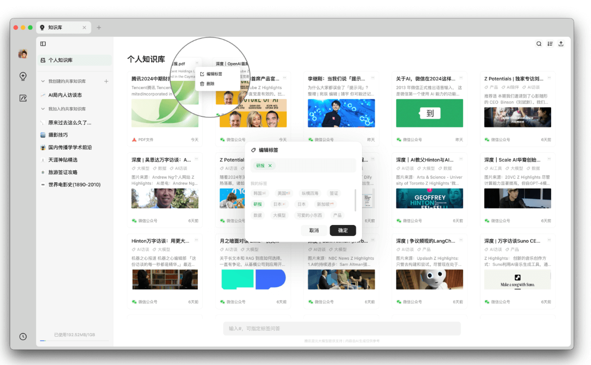 2)收藏浏览内容:除了本地上传,也可以在网页浏览、AI 对话、笔记写作的过程中随时点击右上角的「加入知识库」收藏有价值的信息
