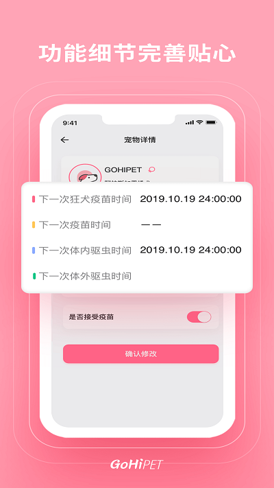 1.贴心提醒功能,能够提醒客户给自己的爱宠接种疫苗。