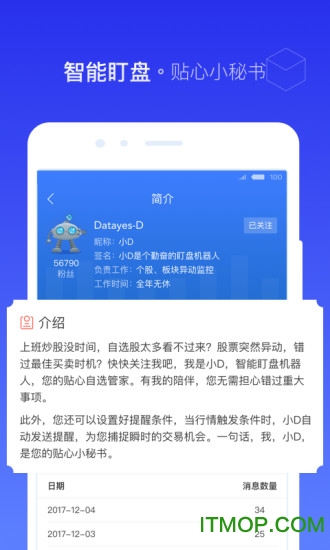 萝卜股票特有"智能机器人炒股家族",每一个机器人都可以充当投资者的贴心顾问,以盯盘和看盘机器人为例: