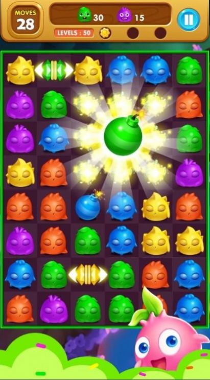 2、炸弹道具适用于单个难以消除的元素,或场面混乱的小动物。